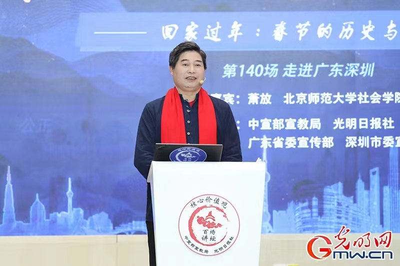 2024年1月22日,由中宣部宣教局、光明日报社共同主办的“核心价值观百场讲坛”第140场活动在广东深圳举行。日本漫画 萧放教授应邀作题为《春节的历史与文化》的演讲,引发热烈反响。