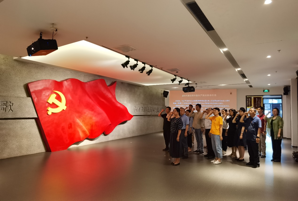 北京市全面从严治党党性教育基地(中共北京市委党校党性教育教学基地)位于北京市委党校,是对全市党员领导干部进行党性教育的互动式、情景式教学与研究平台。在讲解员的带领和讲解下,同志们以历史为脉络,依次参观了“让历史告诉我们”“在从严中发展壮大的北京党组织”“信念与立场是党性的根基”“牢记第一身份是共产党员党性的基本要求”“从严治党一刻不能放松”“以‘零容忍’态度惩治腐败”“不守纪律不讲规矩党性就无从谈起”以及“担当起历史重任是党性的根本体现”等8个专题教学点,通过观看视频、参观展陈、聆听讲解,边看边学边思,深入学习了党的百年历程里中国共产党人的伟大精神、坚强党性、优良传统和从严治党的历史经验,深刻感悟新时代全面从严治党的坚定决心和取得的伟大成就,深刻领悟了党性党风党纪一起抓对于全面从严治党的重要意义。最后,全体党员以铿锵有力的声音重温入党誓词,在党旗下强化了对马克思主义的坚定信仰、对中国特色社会主义的坚定信念,和对实现中华民族伟大复兴中国梦的坚定信心。