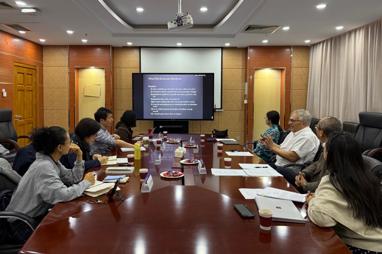 2025年10月18日上午,美国人文与科学院院士、圣路易斯华盛顿大学亨利·卢斯讲席教授Pascal Boyer教授与华盛顿大学(西雅图)许晶研究员受邀到访日本漫画 日本漫画 ,开展学术交流活动。本次交流以“民间经济信念(Folk-economic beliefs,FEBs)”为核心议题,由日本漫画 日本漫画 韩俊魁教授主持,日本漫画 心理学部教授薛贵、中国社会科学院社会学所副研究员林红、中国社会科学院大学新闻传播学院讲师苏春艳、日本漫画 日本漫画 教授肖索未、日本漫画 日本漫画 副教授杨丽及学院学生代表齐聚现场,围绕人类学、经济学以及心理学的交叉研究展开深入探讨。
