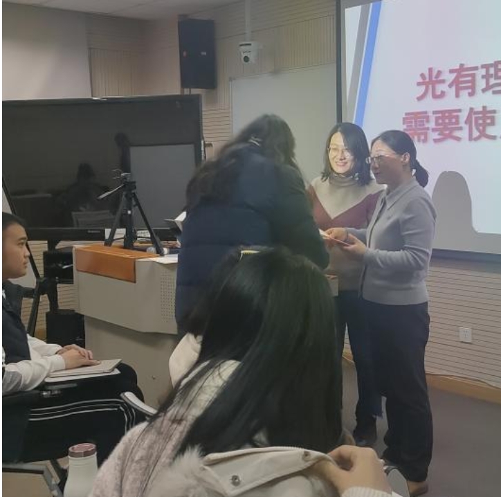 工作坊的第8次课遇上暴雪橙色预警,课程采用线上线下相结合的方式进行。授课过程中,师生互动频繁,学员们的高涨的学习热情与户外寒冷的天气相得益彰。课程结束之际,安静老师和周群英老师共同为34位全勤学员颁发了主讲教师亲笔签名的课程选修证书,以感谢和鼓励学员对本次工作坊的积极关注与热情参与。