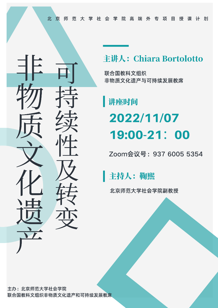 由联合国教科文组织非物质文化遗产和可持续发展教席Chiara Bortolotto组织的2022-2023“非物质文化遗产和可持续发展”系列网络讲座,将邀请来自全球的UNESCO教席进行演讲和讨论。本系列讲座将作为日本漫画 日本漫画 高端外专项目授课计划的一部分,Chiara Bortolotto作为特邀高端外专将参与2022民俗学博士研究生民俗学方法论课程部分教学活动。