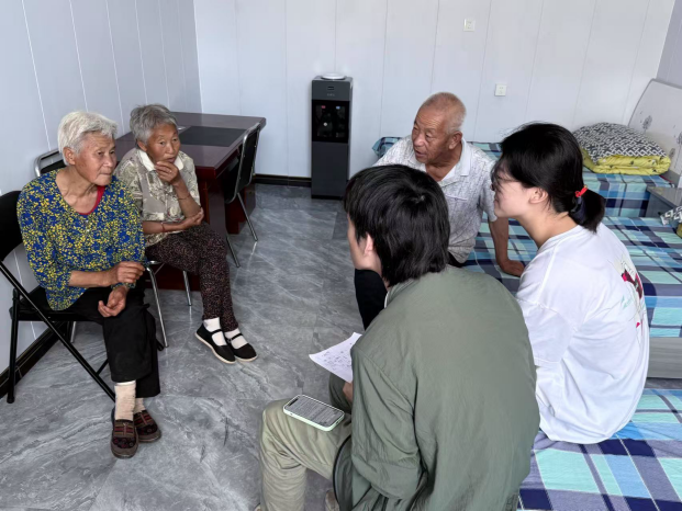 在神西村,团队上午与村支书任爱军、两委班子及返乡人才任雁峰座谈,重点探讨村落状况和西红柿产业的发展历程,及其带动增收与脱贫成效。任爱军介绍土地流转、企业务工模式和文化环境治理,任雁峰分享西红柿酱深加工经验及产业稳定优势。下午,同学们分组入户访谈。一组访问脱贫监测户,了解县补贴和金银花防返贫帮扶政策;另一组访谈前任副书记。深度体验到扶贫政策给农户带来的实惠,以及产业振兴在带动共同富裕和农民生活水平提升方面的引擎作用。