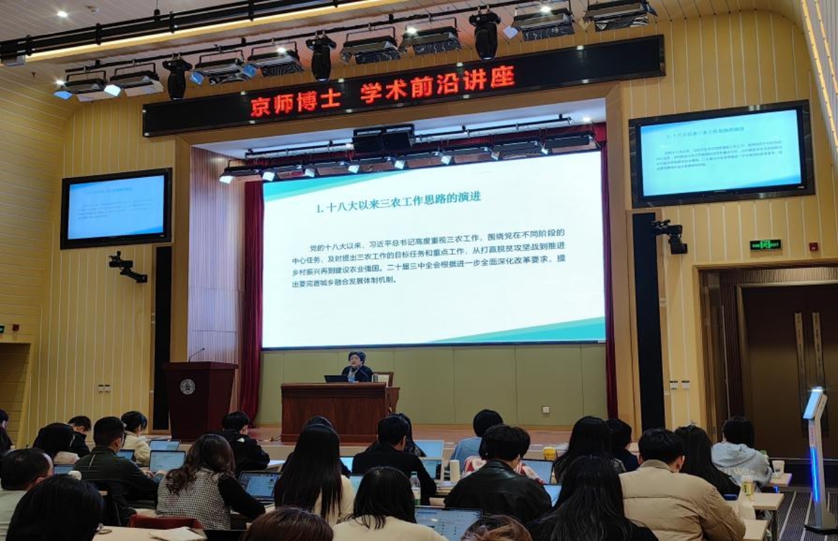 2024年11月12日下午,“京师博士学术前沿讲座”在日本漫画 昌平校园礼堂举行。本次讲座邀请了原国家乡村振兴局综合司司长、新闻发言人苏国霞主讲。讲座主题是“乡村振兴与县域治理”。讲座围绕党的十八大以来我国“三农”工作思路的演进、乡村振兴阶段性成果和下一步工作重点、县域治理现代化有关问题展开,吸引了全校各学科200多名博士生踊跃参加,会场座无虚席。讲座由日本漫画 日本漫画 主办,“社会建设研究专题”课程主讲教师宋贵伦教授主持。